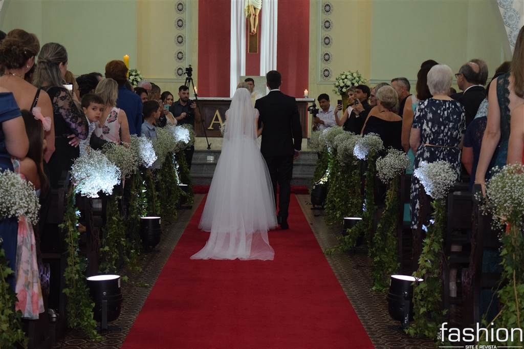A elegância de uma noite de matrimônio onde os jovens engenheiros Tiago Dagostim Jeremias e Meriéllen Medeiros Costa selaram união na Igreja Matriz Nossa Senhora Mãe dos Homens, em Araranguá.
