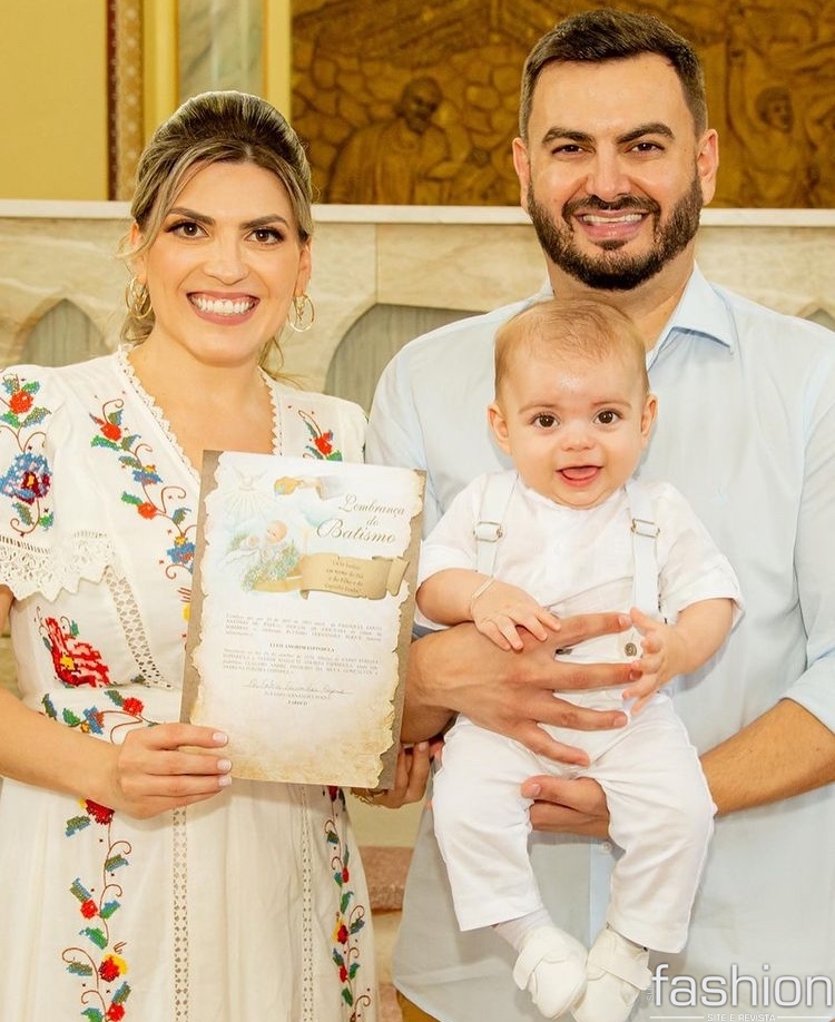 Os papais Treissi Amorim e Fábio Espindula são só alegria junto do baby que, desde cedo, transborda simpatia e carisma. A jornalista e o empresário escolheram para apadrinhar o filho, a irmã de Fábio, Andresa Espindula ao lado do marido Cláudio Gonçalves.