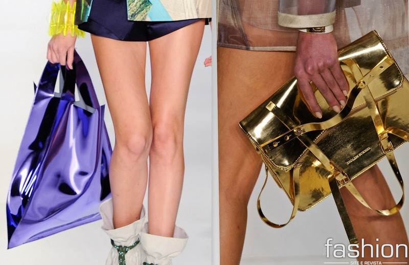 Antes cintilaram os glitteres, lantejoulas, paetês, e alguns detalhes metálicos, agora o ponto principal para as novas coleções estão, justamente, nos metalizados, tanto para os tecidos sintéticos, quanto para tons de efeito mais fashion, em dourado, prateado e bronzeado. Estas texturas metálicas, quando em roupas, lembram a tendência do jeans resinado, de efeito de couro, entretanto, para a temporada quente virá com um conceito de estilo megapoderoso, a final, que mulher não quer sair por aí com looks em ouro rosé, sandália com tiras em glitter ouro ou bolsa prateada?