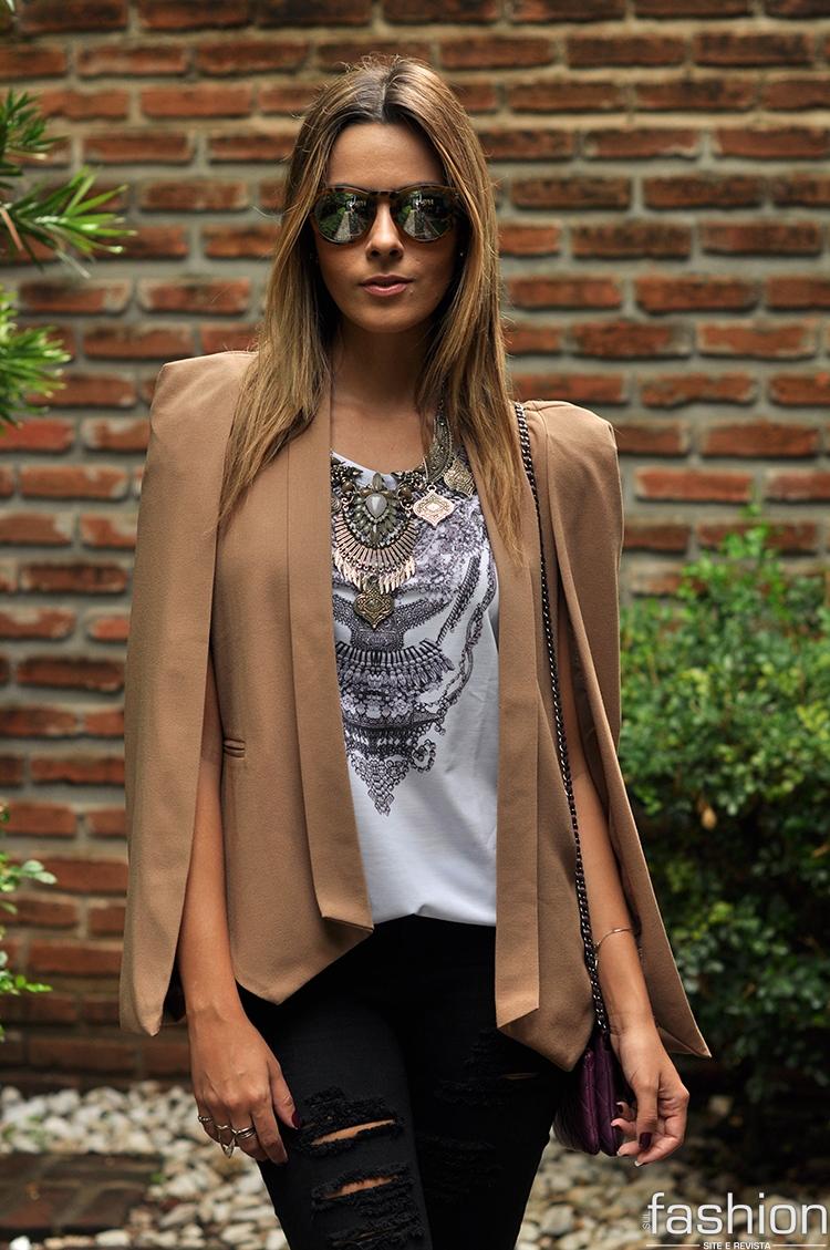 Em looks casuais, o acompanhamento com uma calça jeans destroyed quebra a seriedade do blazer-capa deixando uma imagem despojada. Além dos modelos básicos, os trabalhados são uma ótima pedida para reuniões.