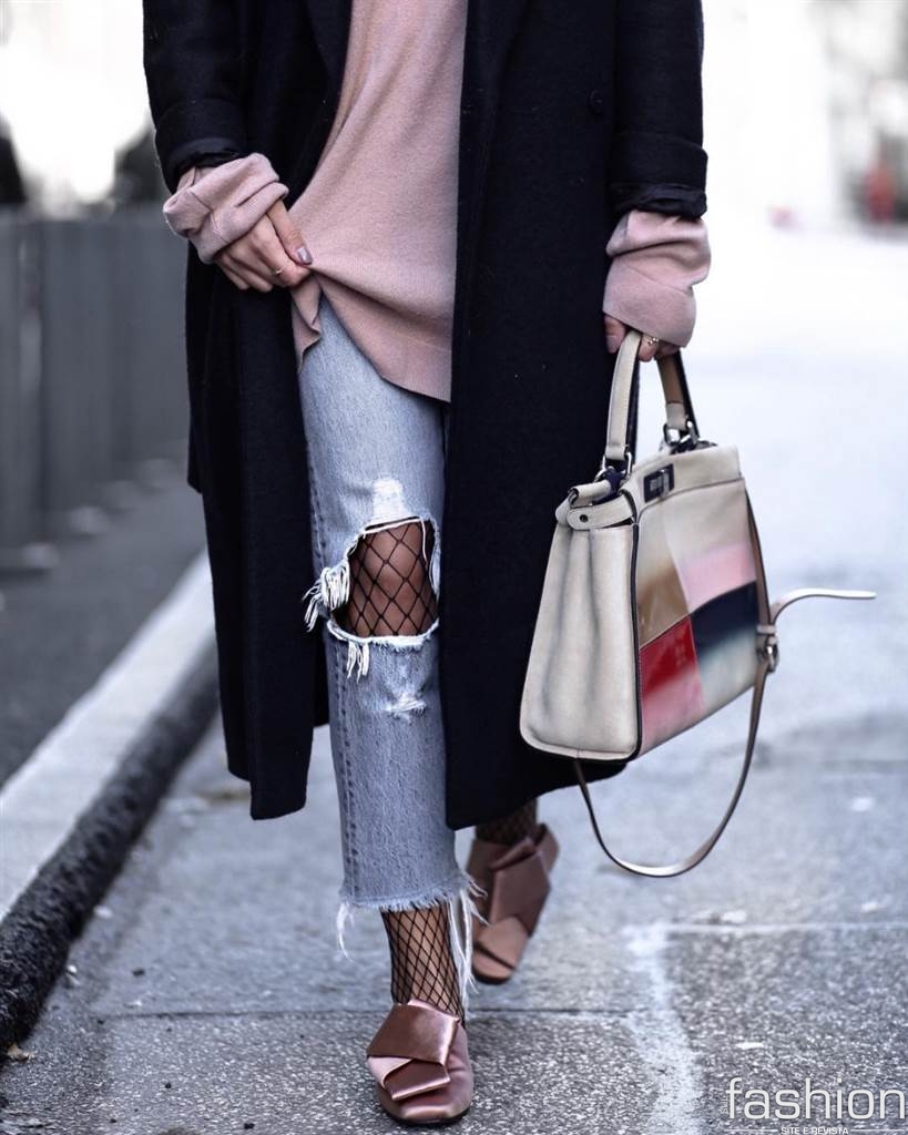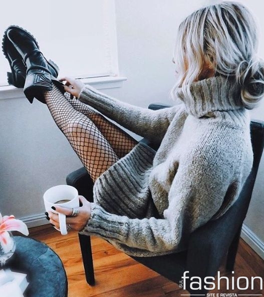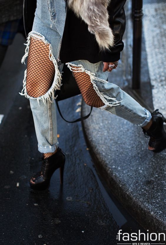 O jeito de usar que mais vem chamando atenção e se destacando é usando a meia por baixo daquela calça jeans rasgadona sabe?! A sobreposição fica linda com jeans e também com vestidos e principalmente aqueles blusões de lã, tenho certeza que é uma das principais apostas para o próximo inverno.
