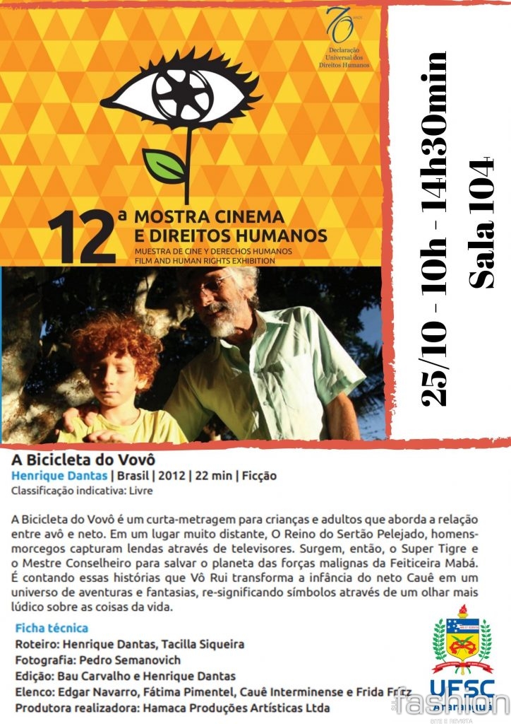 Entre os dias 22 e 25 de outubro o Campus Araranguá da UFSC será um dos pontos de exibição da 12ª Mostra Cinema e Direitos Humanos. Organizada pelo Ministério da Mulher, da Família e dos Direitos Humanos em parceria com o Instituto Cultura em Movimento (ICEM), a mostra tem como objetivo consolidar a cultura e a educação em Direitos Humanos e contribuir para a formação de uma nova mentalidade coletiva para o exercício da solidariedade, do respeito às diversidades e da tolerância.