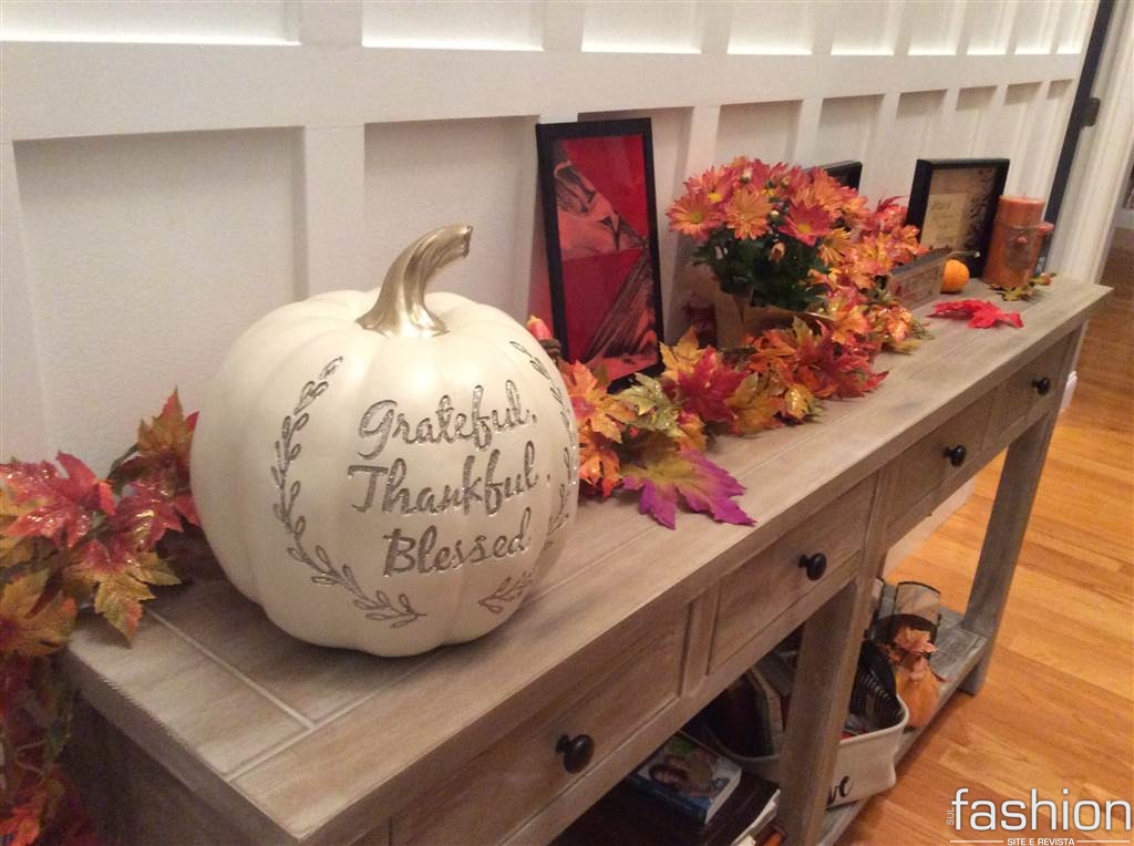 Na decoração da casa, tudo vale, desde que seja criativo. Folhas secas e abóboras não podem faltar até que o Dia de Ações de Graças chegue. A tradição aquece os lares e corações de uns e o estômago de outros. Mesas fartas e bem decoradas ostentam beleza e elegância. Somente no dia seguinte é que se permitido mudar a decoração para o Natal que celebramos a exatamente um mês mais tarde.