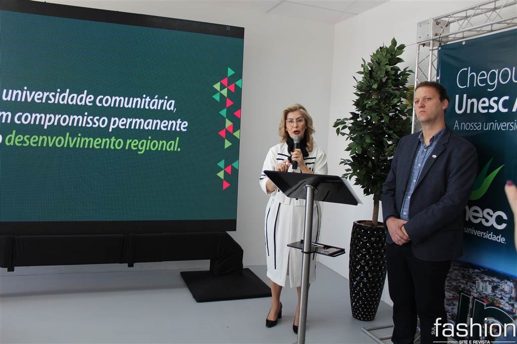 Ao apresentar o projeto aos convidados, a reitora da Unesc, Luciane Bisognin Ceretta, destacou que a parceria firmada oferece, a partir de agora, uma proximidade ainda maior com a comunidade da Amesc e, principalmente, grande impulso para o desenvolvimento regional, bandeira constante da Universidade, motivos comemoradas na noite de lançamento. “Muito mais do que cursos, estamos trazendo oportunidades. Isso está sendo possível graças ao trabalho de equipes que se dedicaram e rapidamente conseguiram com que estivessemos realizando esse momento especial hoje. A hora é agora”, salientou.