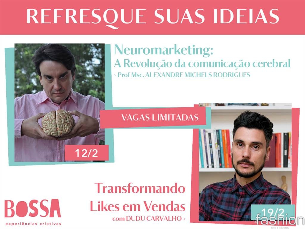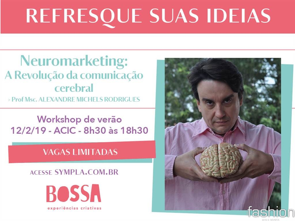 O tema Neuromarketing: a revolução da comunicação cerebral, no dia 12 de fevereiro, será abordado pelo professor Alexandre Michels Rodrigues, que atua em instituições de ensino consagradas no Brasil e no exterior. “É um tema muito atual, que vem sendo cada vez mais procurado, por profissionais dos mais diferentes segmentos, uma vez que é uma área científica que se foca no comportamento humano, o que a torna muito importante para todos os tipos de atividades profissionais desenvolvidas, pontua a sócia da Bossa Experiências Criativas, Lúcia Búrigo.